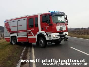 Die Freiwillige Feuerwehr Pfaffstätten stand mit 10 Mann und drei Fahrzeugen (Voraus, Tank 1 und RLFA) im Einsatz.