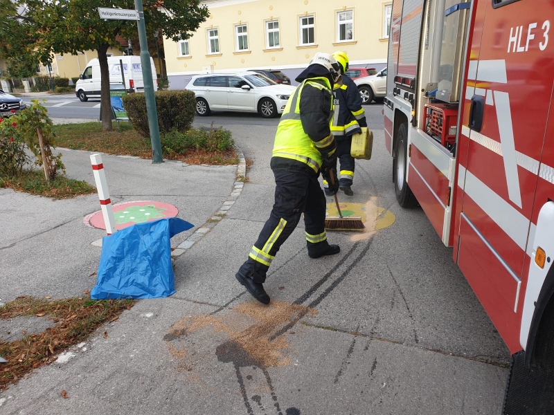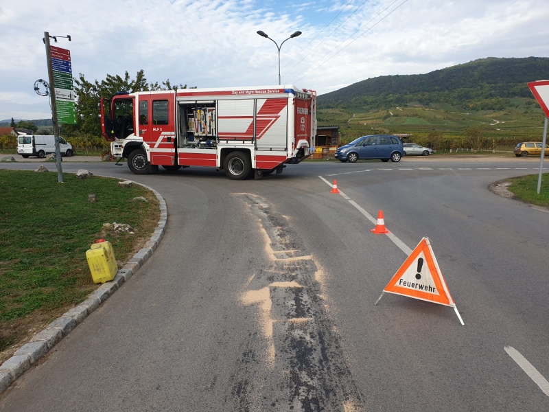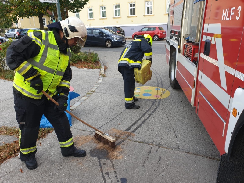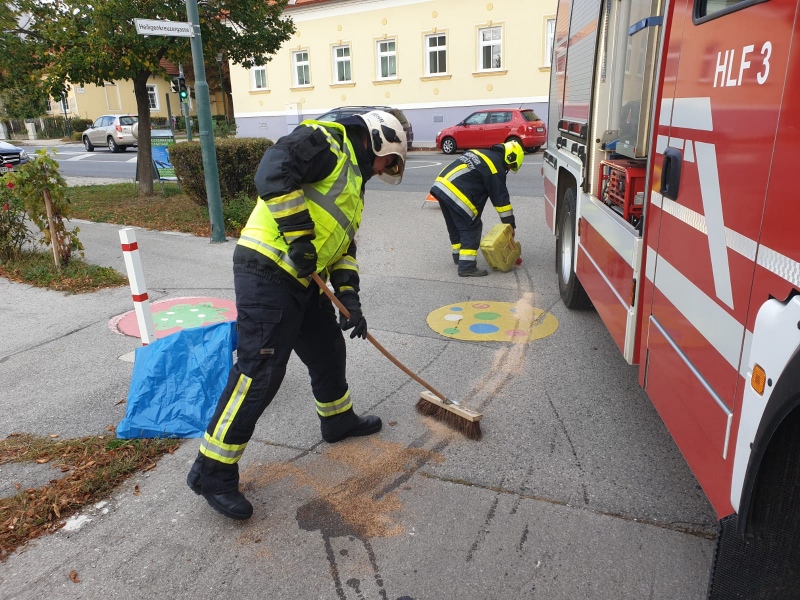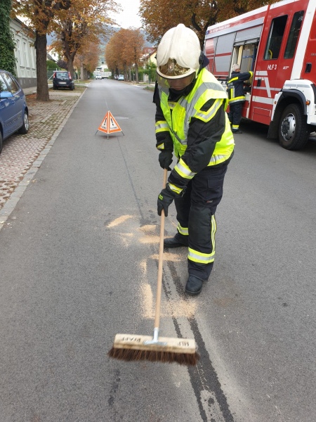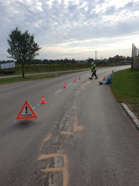 Am heutigen (9.10) Vormittag wurde die Freiwillige Feuerwehr Pfaffstätten benötigt, um eine Ölspur in Pfaffstätten zu beseitigen. Nach ersten Erkundungen konnte eine fast 1,5 km lange, verunreinigte Strecke festgestellt werden. Die gesamte Strecke wurde mittels Ölbindemittel gereinigt. Die Freiwillige Feuerwehr Pfaffstätten war mit Tank1 und Bus, sowie 6 Mann ca eine Stunde im Einsatz.