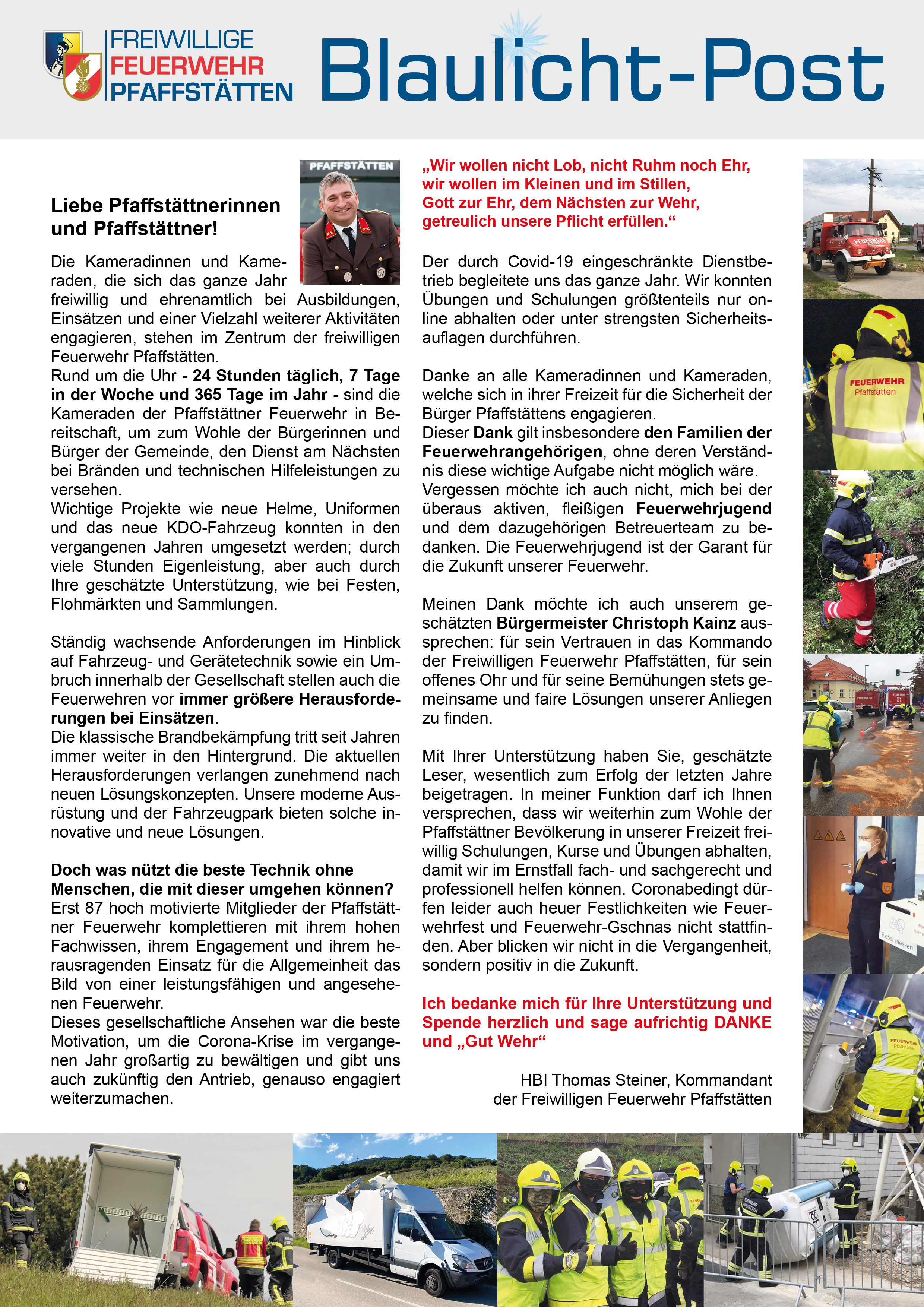 Liebe PfaffstättnerInnen! Derzeit in ihrem Postkasten! Wir danken für Ihre Unterstützung!