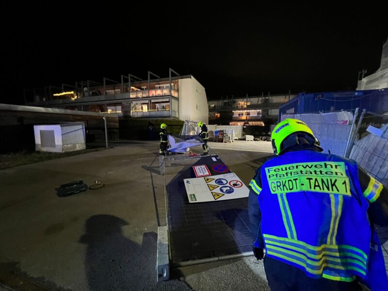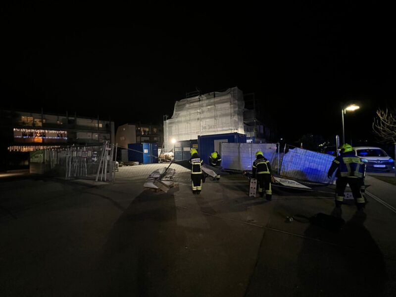Am 20.12. war im ganzen Bezirk Baden aufgrund der schweren Sturmböen einiges los. In Pfaffstätten mussten einige Baugitter befestigt bzw. gesichert werden, die entweder kurz vor Sturz waren oder schon Gehwege blockierten.