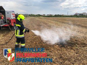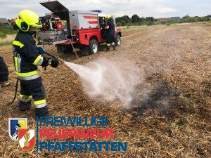 Am Sontag, den 8. Juli wurden die Kameraden der Freiwilligen Feuerwehr um 13:49 Uhr zu einem Flurbrand in die Badener Straße, Bereich zwischen Billa und Friedhof Traiskirchen gerufen. Durch das rasche Eingreifen von Feuerwehrkameraden aus Guntramsdorf, die zufällig vorbeikamen, konnte eine Ausbreitung hintangehalten werden. Nach dem Eintreffen der ortszuständigen Feuerwehr Pfaffstätten wurde das Gebiet großräumig abgelöscht und vorsorglich gewässert. Nach ca. 45 Minuten konnten die Kameraden einrücken und die Einsatzbereitschaft wieder herstellen.