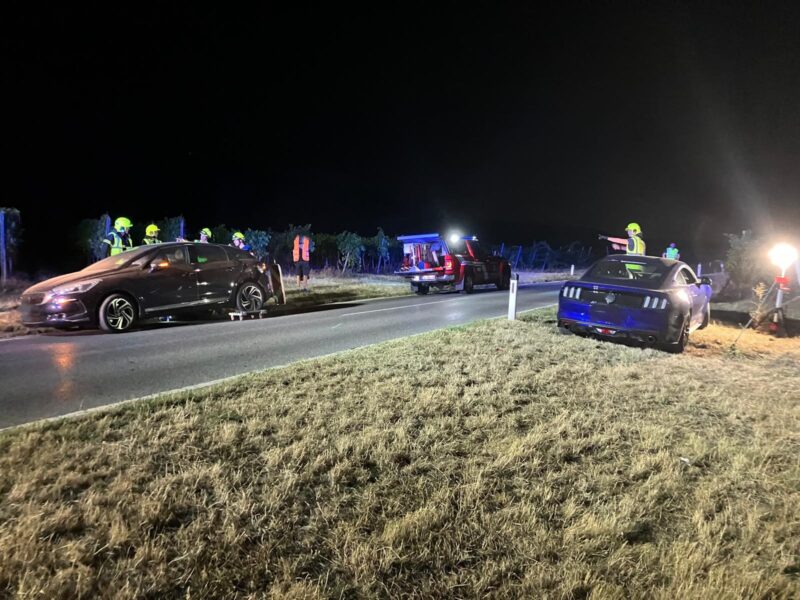 Die Unfallstelle wurde abgesichert und ausgeleuchtet. Ein Fahrzeug wurde mittels Wagenheber hochgehoben und mit zwei Rangierroller verkehrssicher abgestellt. Das zweite Fahrzeug (Mustang) musste ebenfalls mit dem Wagenheber angehoben werden, um Plastikteile vom Radkasten zu entfernen. Dieses musste ebenfalls verkehrssicher abstellt werden, da die vordere Achse defekt war.