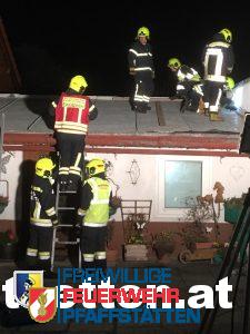 Wie auch schon durch die Medien bekannt, erreichte der Sturm „Yulia“ Sonntag Nachmittag in Teilen NÖ bis zu 120kmh. Kaum eine Feuerwehr im Bezirk Baden war nicht im Einsatz. So wurde auch die FF Pfaffstätten um 18:30 zu dem ersten Sturmeinsatz alamiert. Eine Poolabdeckung musste gesichert werden. Dies führten die KameradInnen mittels zwei Leinen und zwei Zurrgurte durch. Einsatz Nr. 2 folgte nicht wenig später: Rund 4m Blechdach eines Hauses hatte sich gelöst und wurde durch 4 Staffeln und Nägeln wieder befestigt.