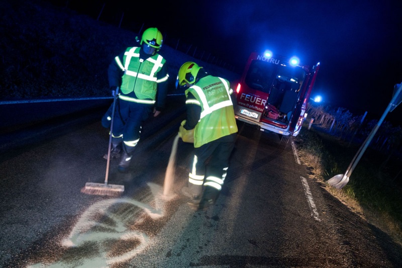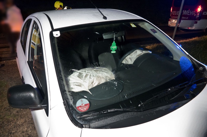 In den späteren Abendstunden des 14.10. wurde die Freiwillige Feuerwehr Pfaffstätten zu einem Fahrzeugbrand auf der Weinbergstrasse zwischen Pfaffstätten und Gumpoldskirchen alamiert. Beim Eintreffen des Einsatzleiters konnte für den Fahrzeugbrand Entwarnung gegeben werden, da der Rauch durch die ausgelösten Airbags verursacht wurde. Es stellte sich heraus, dass es einen Zusammenstoß des PKWs mit einem Wildschwein gegeben hat. Polizei und die Florianis sicherten die Unfallstelle weiträumig ab und das Fahrzeug wurde verkehrssicher abgestellt. Die Lenkerin wurde an der Hand verletzt und fuhr mit einer Bekannten ins Krankenhaus. Die Strasse wurde mittels Ölbindemittel gereinigt. Nach gut 1 1/2 Stunden waren die Arbeiten beendet und die Einsatzbereitschaft der FF Pfaffstätten konnte wieder hergestellt werden.